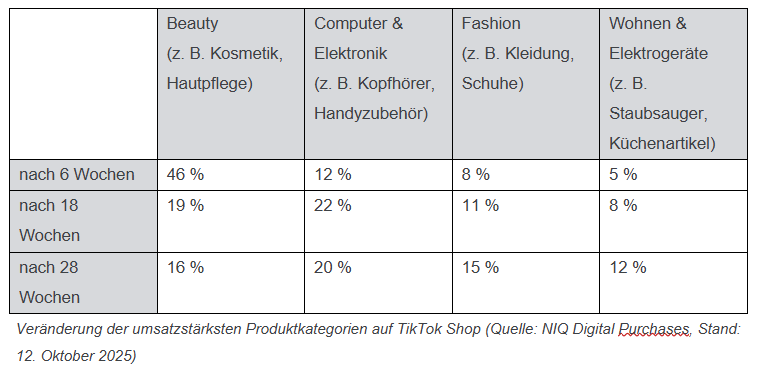 Im europäischen Vergleich wächst der deutsche Markt am schnellsten. Nach Daten von NIQ Digital Purchases hat der TikTok Shop hierzulande 10,5 Prozent der Onlinekäufer erreicht – nur 28 Wochen nach dem Start Ende März. In Spanien, wo die Plattform 16 Wochen früher live ging, lag die Käuferquote nach ebenso vielen Wochen Marktreife bei 5 Prozent. Deutschland hat damit in fast der halben Zeit das Niveau erreicht, für das Spanien gut zehn Monate benötigte.