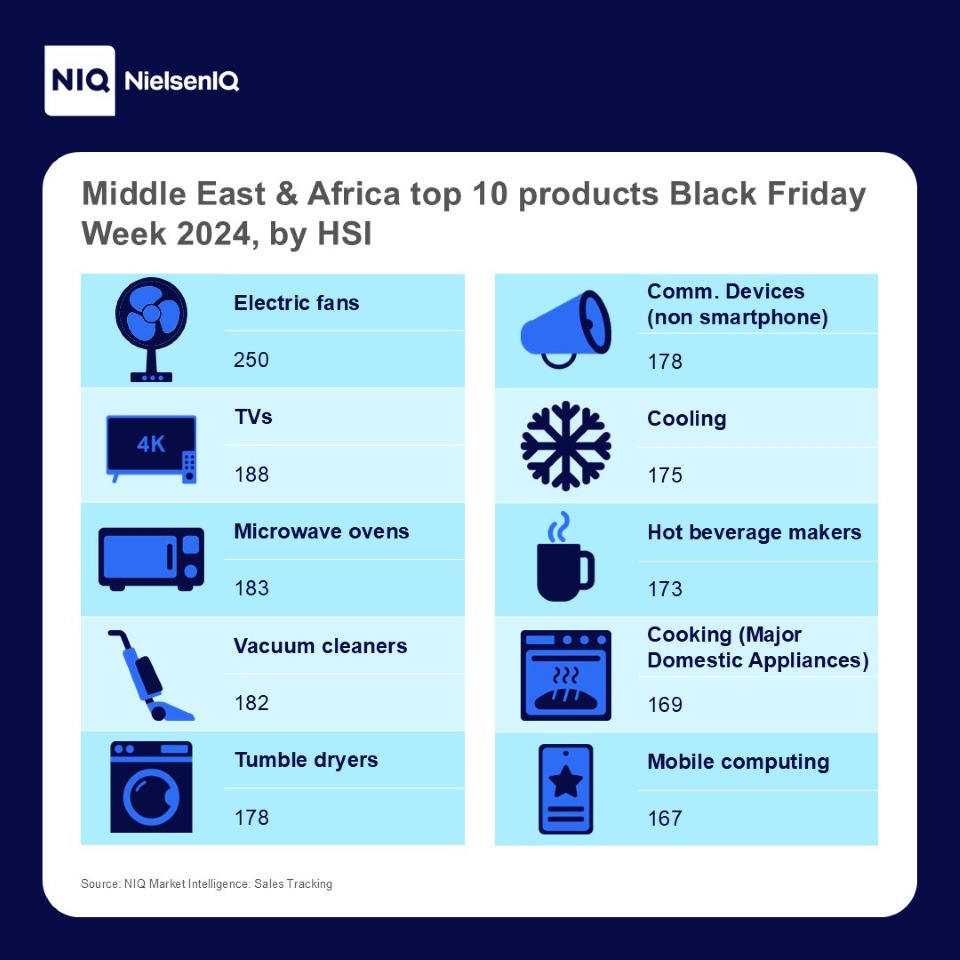 - Top T&D products for Black Friday 2024 included electric fans (by a wide margin), TVs, microwave ovens, vacuum cleaners, and tumble dryers.