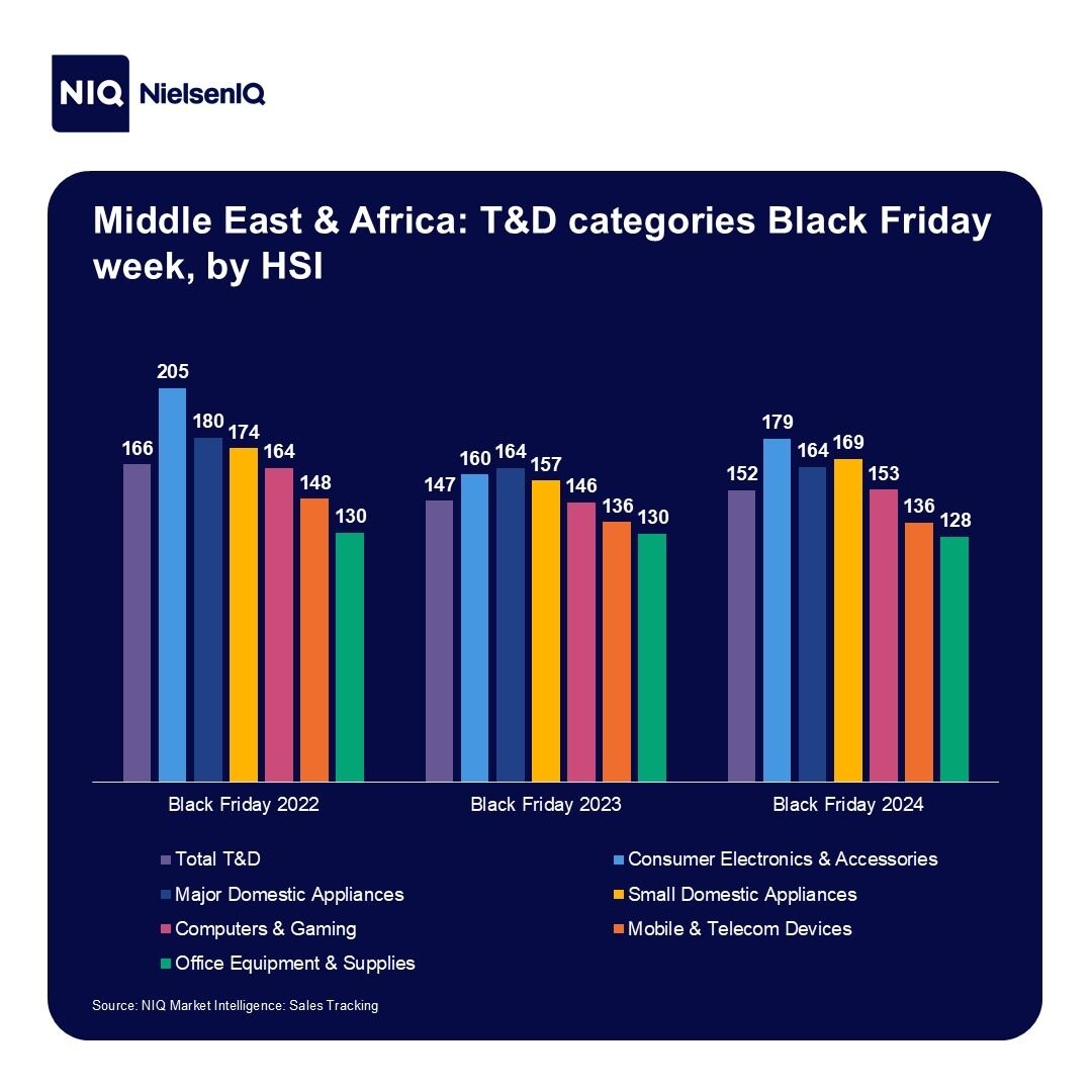 - Israel (161) had the next-highest HSI, followed by Türkiye (146), Saudi Arabia (142), UAE (137), and Morocco (108) showing very little increase on Black Friday.