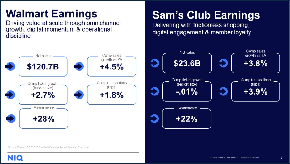 Sam’s Club also posted healthy gains with 22% ecommerce growth, high member engagement, and rising renewal rates. Both banners underscore Walmart’s momentum in digital fulfillment, marketplace expansion, and value-at-scale retailing.