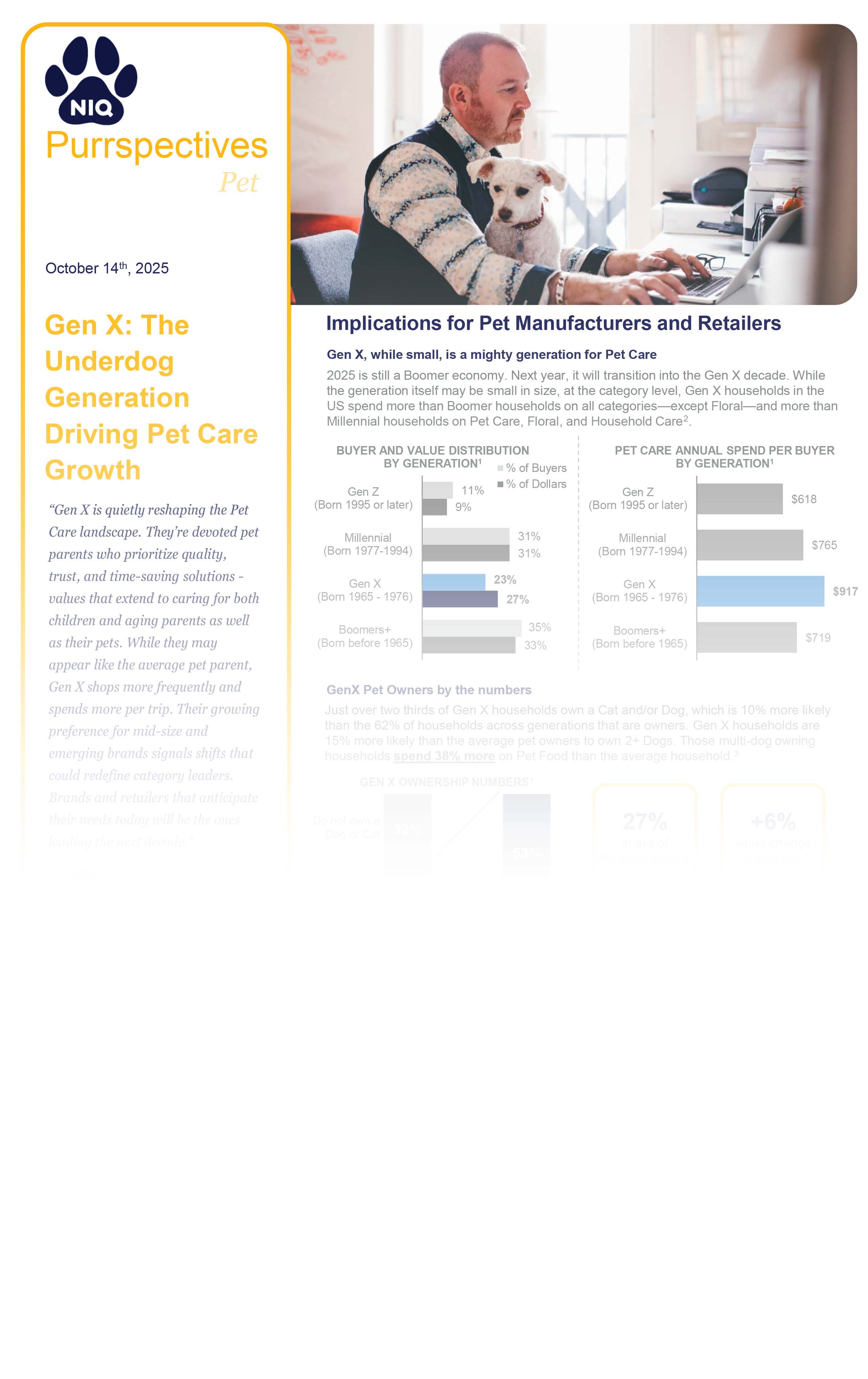 “ Gen Z is quietly reshaping the Pet Care landscape. They’ve devoted pet parents who prioritize quality, trust, and time-saving solutions – values that extend to caring for both children and aging parents as well as their pets. While they may appear like the average pet parent, Gen X shops more frequently and spends more per trip. Their growing preference for mid-size and emerging brands signals shifts that could redefine category leaders. Brands and retailers that anticipate their needs today will be the ones leading the next decade.”