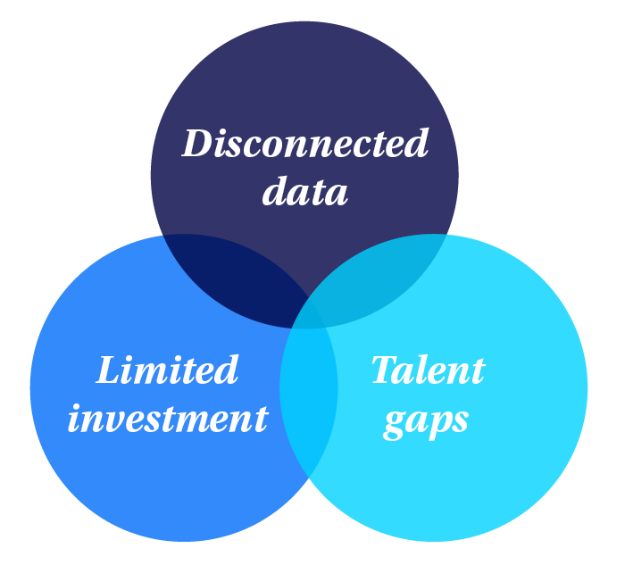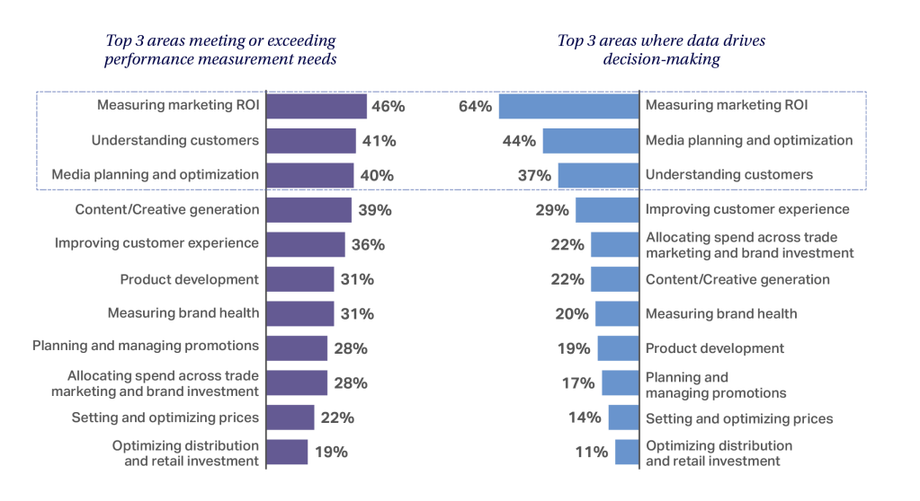 - CMOs have no shortage of data but lack full connectivity. The proliferation of media channels has created unprecedented opportunities to engage with consumers, but walled gardens, privacy regulations, and disconnected platforms have exacerbated data fragmentation—the primary barrier CMOs attribute to keeping them from maximizing the potential of insights and translating it to teams, colleagues, and senior leadership.