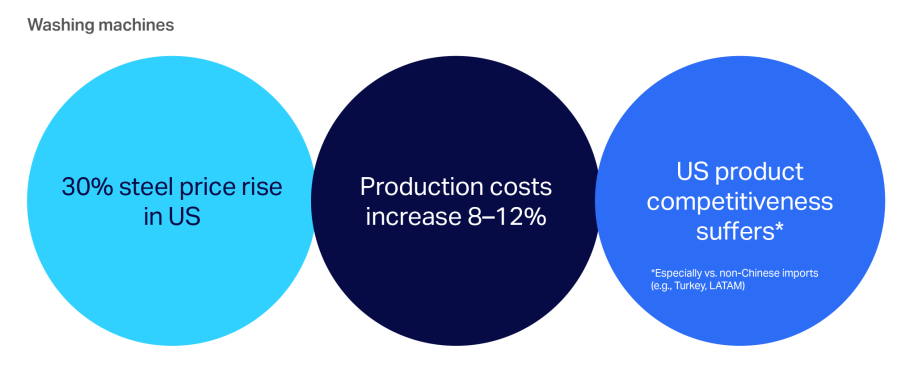 In the remainder of 2025 and throughout 2026, these changes will provide a more level playing field for US manufacturing, eliminating disadvantages to US manufacturers versus MDA imports. However, as a result, US consumers will have to pay extra for these products—whether US made or imported—as happened when US steel tariffs were introduced in 2018. In a recent interview, the CEO of Michigan-based manufacturer Whirlpool estimated the new tariffs could increase the retail price of imported appliances by $50 to $70, potentially swaying consumer purchasing decisions.