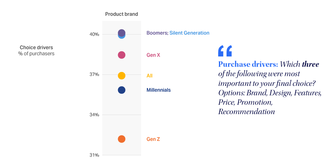 Brand holds more influence on older generations in their MDA purchases; Gen Z is less brand-driven in their choices