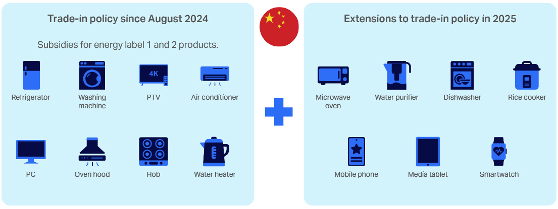 The subsidies boosted sales of key categories in China in H1 2025, but at a lower level than seen in H2 2024, when consumers first rushed to take advantage of the new offer. With the policy now expected to continue through the remainder of 2025, China’s consumers may not sense urgency. But there will likely be a purchasing spike in December 2025 as people rush to buy ahead of the speculated end date.