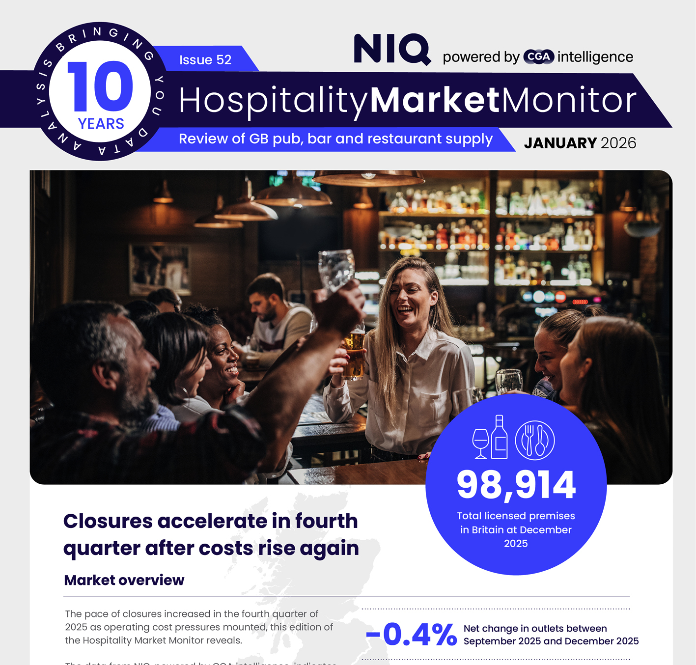 Britain’s number of licensed premises fell by 0.4% in the last three months of 2025, the latest Hospitality Market Monitor from NIQ reveals.