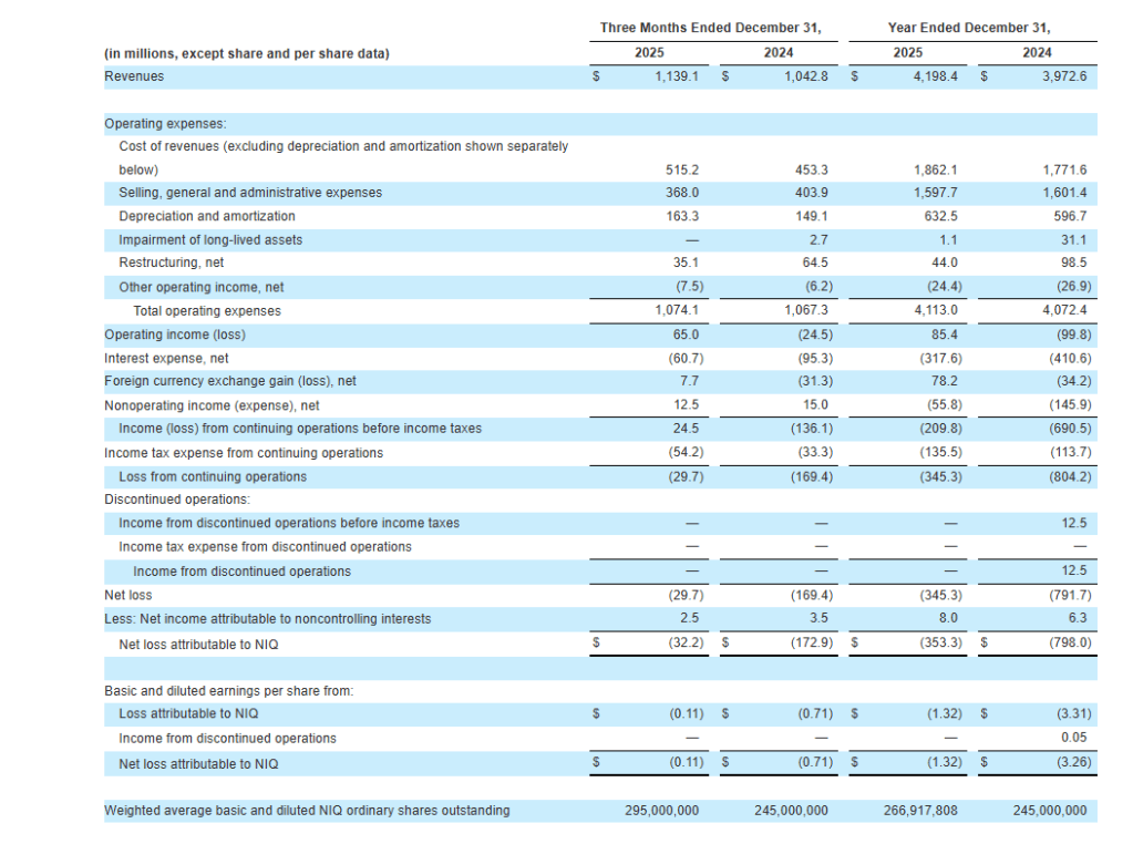 CHICAGO, February 27, 2026 – NIQ Global Intelligence plc (NYSE: NIQ) (the “Company”, or “NIQ”), a leading global consumer intelligence company, today announced financial results for the fourth quarter and full year ended December 31, 2025.