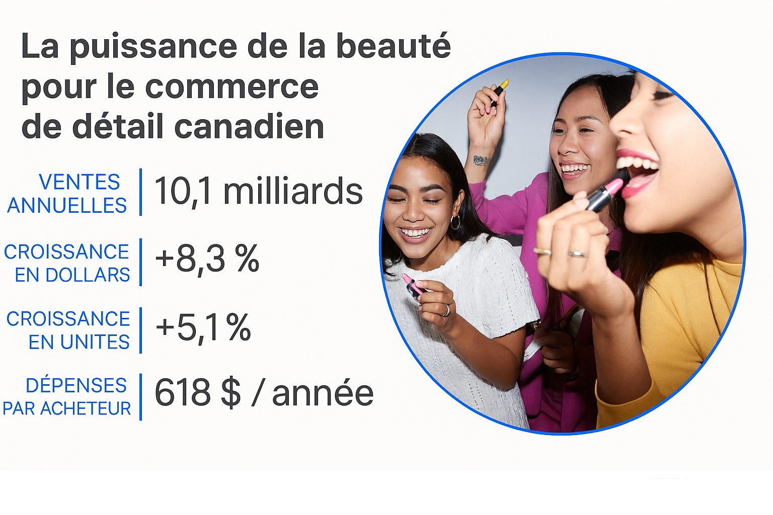 Les ventes de produits de beauté au Canada ont atteint 10,1 milliards de dollars, en hausse de +8,3 % sur un an, tandis que le marché mondial de la beauté a progressé de +10 %. Les catégories qui connaissent la plus forte croissance incluent les gels douche, les parfums et les hydratants. Malgré l’incertitude économique, le secteur de la beauté demeure résilient, porté par l’innovation et le désir des consommateurs de prendre soin d’eux-mêmes.
